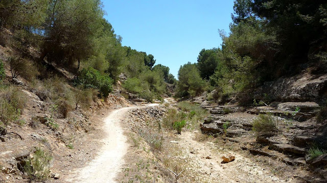 A partir de aquí terminan los bancales que rodean el cauce, por lo que el aporte artificial de agua, ya no influye en el normal aspecto de un típico barranco de nuestras sierras.