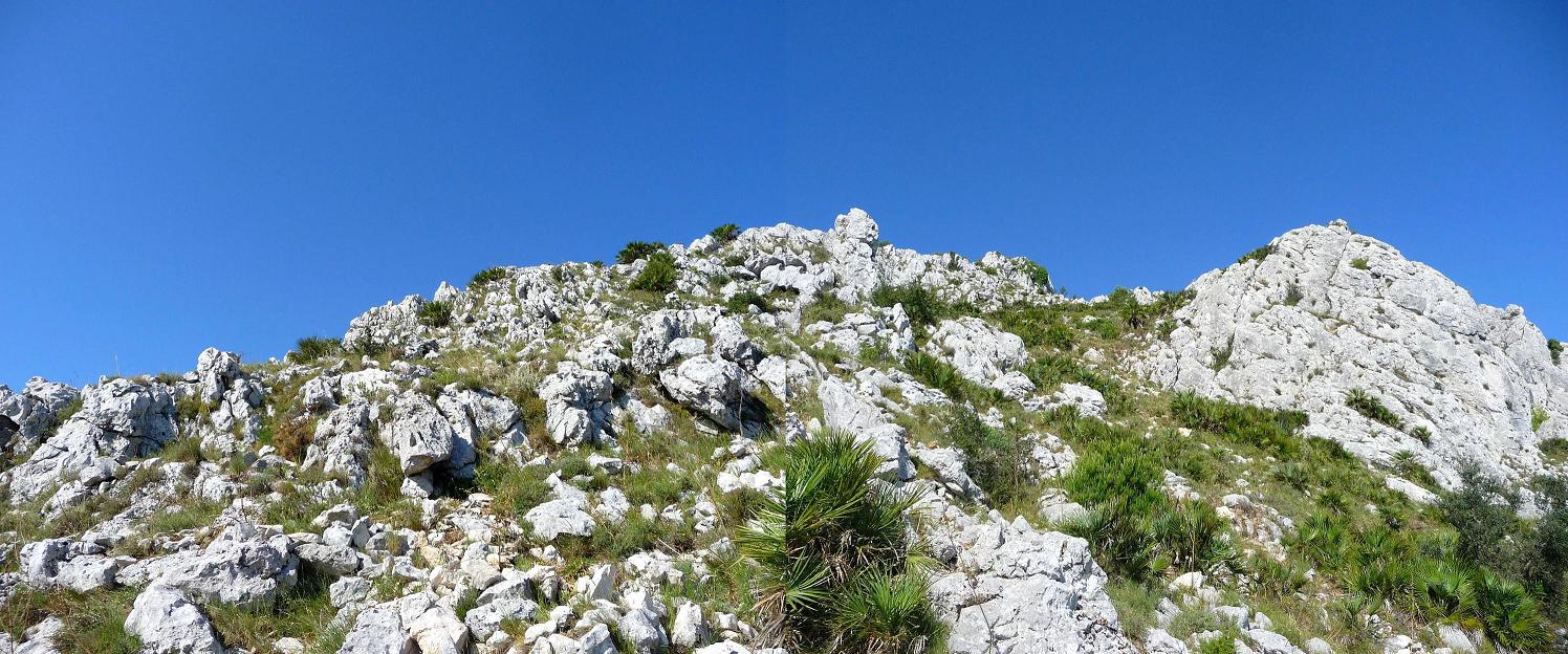 Esta es la cima del Puntal del Morrut, con 745 metros es el punto más elevado de la Serra del Migdia.